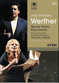 実のところ、これはマスネーの翻案だけでなく、このオペラを演ったプロダクションの演出にも多く起因する。DVDジャケを見ればわかるように、ゲーテの原作(そして多分、マスネーの翻案も)が18世紀を舞台にしているのに対して、このオペラでは捻りが加えられて、舞台が20世紀半ばのドイツに設定されている。そしてヒロイン・ロッテはレトロなツーピースのスーツに身を包み、カールさせた金髪ショートと真っ赤な口紅くっきり眉毛、カフェの一席で気だるげに視線を流すという、ハリウッド・レトロ・クラシック女優のような趣きになっているわけだ。もうこれだけで、可憐で優しくも気高い天使かつ慈母のような雰囲気を最初から最後までひたすら発散させていた原作の完璧少女・ロッテとはまるきり別人である。つーか原作は基本的に、恋する青年ウェルテルがしたためた書簡小説の体裁で書かれているので、盲目的な恋慕の対象として置かれるロッテが、純粋完全無欠の存在として描かれるのも無理はないのだ。原作には、ウェルテル以外の視線も主観もほとんど存在しない。そして原作物語の骨格とは、まさしく、そのプラトニックな恋慕にとらわれた主観が募りに募って苦悩に至り、一人の若者の命を奪うにいたるまでのプロセスにほかならない。ゆえにロッテの人物造型が異なれば、作品全体がまったく別物になるのに不思議はないのだ。