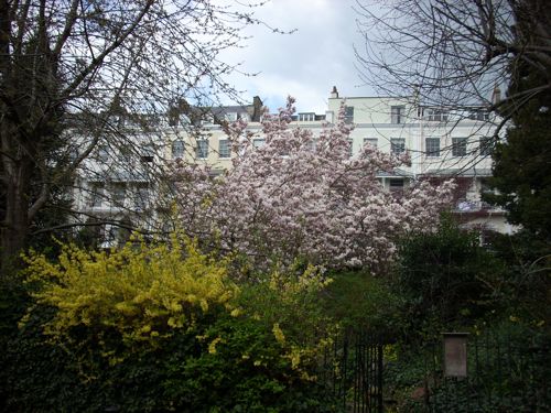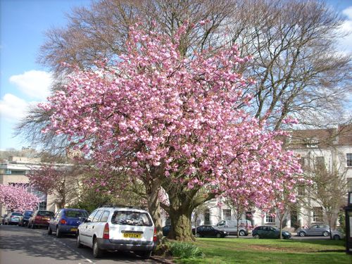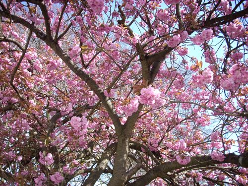 「和風!」のイメージの濃い桜、梅なども、意外とイングランドで見かけることが多いです。これは八重桜?