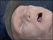 アイスタン(イスタン?iStan)と名付けられたこのダミー(練習用人形)、血を流すわ、呼吸をするわ、汗をかくわ、血圧は上下するわ、加えてものを吐いたりもするそうです。なんとハイテクな人形!