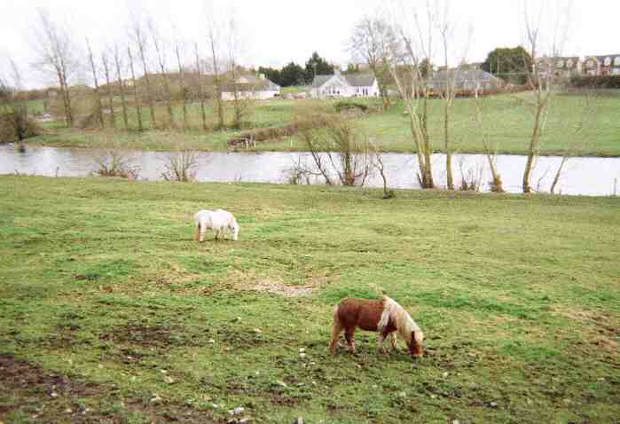 最後は廃墟の近くの川沿いでぼんやり草をはんでいたポニー。