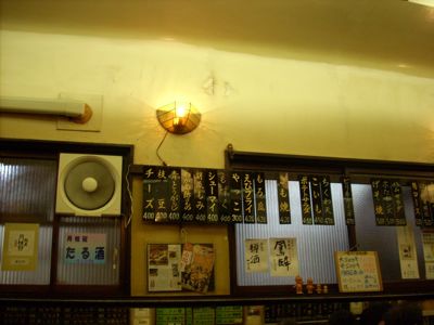 昭和2年の開店だそうです。歴史のある店なんだけど、レトロものに多い高級骨董な感じでなく、あくまで庶民派でチープで小汚いところがいい。時間が早めだったせいもあるかもしれないけど、店内の客はとにかくおじさんばっかりでした。