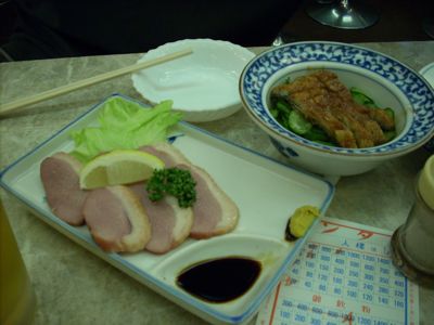 こちらは鴨肉ロースのくんせいと鰻ざく。鴨はハムみたいですが、脂がのっていて、まっ黄色の昔ながらのマスタードとよく合って、なかなかのお味。鰻もオーソドックスなお味。