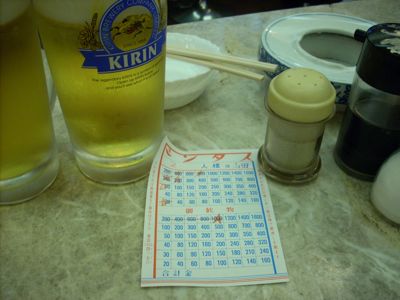 なんだか見たことのないタイプの伝票。追加注文のたびに鉛筆で項目を消していく計算システムがどんなんなってんだろうと、給仕さんをジロジロ見つめてみたけど、結局よくわからんかった。